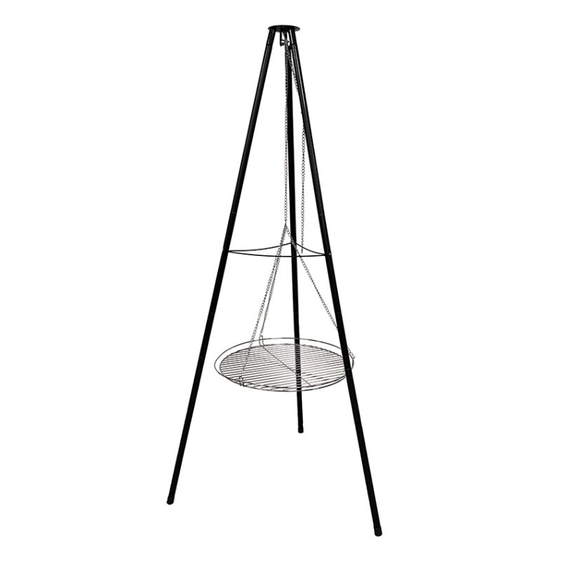 Discover the epitome of outdoor cooking with the Pastime® SCB-13 tripod hanging grill. Its robust steel frame supports an adjustable chrome-plated cooking grill, perfect for mastering your culinary skills outdoors. Whether grilling for a gathering or enjoying a cozy evening under the stars, its contemporary design blends seamlessly into any garden setting. Effortlessly assembled and featuring a mesh top for added safety, the grill ensures memorable moments with friends and family, offering warmth and flavor with every meal.