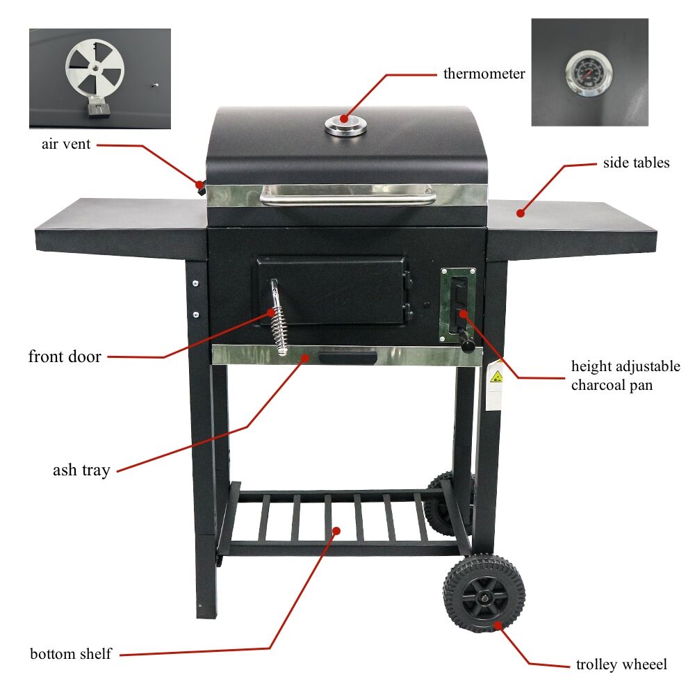This front door is designed for effortless grilling, allowing quick access to the charcoal for easy refueling and fire adjustments. This design provides a steady cooking temperature and makes the barbecue more convenience.